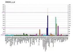 - ^ a b Wick M, Bürger C, Brüsselbach S, Lucibello FC, Müller R (January 1994). "Identification of serum-inducible genes: different patterns of gene regulation during G0-->S and G1-->S progression". Journal of Cell Science. 107 ( Pt 1) (1): 227–39. doi:10.1242/jcs.107.1.227. PMID 8175911.