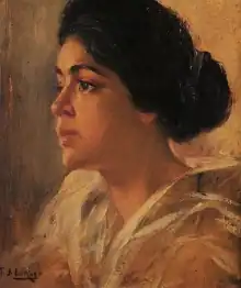 Fabián de la Rosa was born in Paco, Manila to husband and wife Marcos de la Rosa and Gorgonia Cueto. Born to a family of artists, he was exposed to art at an early age and learned to draw well before he could write. He was trained to sketch portraits and landscapes by his aunt, Marciana de la Rosa, when he was ten years old. He also apprenticed under his uncle, Simón Flores y de la Rosa, a well-known painter of portraits and church interiors from the nineteenth century.[7] De la Rosa lived most of his life in the Philippines and visited Europe for the first time when he was 39. He married Gorgonia Tolentino on January 13, 1900.[2][4]
