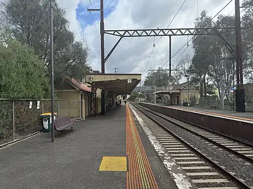 Fairfield railway station is a commuter railway station on the Hurstbridge line, which is part of the Melbourne railway network, and serves the north-eastern suburb of the same name in Melbourne, Victoria, Australia. Fairfield is a ground level host station, featuring two side platforms. It opened on 8 May 1888.[4] Originally called Fairfield Park, the station was re-named Fairfield on 14 November 1943.[4]