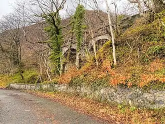 The viaduct spans the small gully created by the Falls of Cruachan, close to the entrance to the pumped-storage Cruachan Power Station, which is located in a chamber within Ben Cruachan.[11][12]