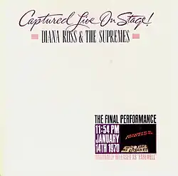 Farewell is a 1970 live album by Diana Ross & the Supremes. The album was recorded over the course of the group's final engagement together at the New Frontier Hotel and Casino in Las Vegas, Nevada, including the final night on January 14, 1970. The show marked Diana Ross' penultimate performance with fellow Supremes members Mary Wilson and Cindy Birdsong. At the conclusion of the show, new Supremes lead singer Jean Terrell was brought onstage and introduced to the audience.