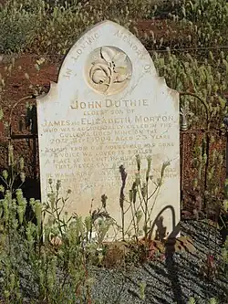 ![]() Grave of John Duthie, killed in a mining accident at the Gullewa Gold Mine in 1904 | |