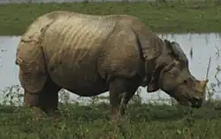 In 2006 Kaziranga had 1,855 Indian rhinoceros, about 70% of the world's total wild population,[4][7] The critically endangered Indian Javan rhinoceros was probably also an inhabitant of Kaziranga.[8] Assam was part of the historical range of the critically endangered pygmy hog. Even though wild boar are present in Kaziranga, the pygmy hog is no longer found here. Kaziranga contained as many as 1,206 Indian elephants in 2005, a 25% increase from 1,048 in 2002.[9] The combined Kaziranga–Karbi Anglong Elephant Reserve has as many as 1,940 elephants.[10]