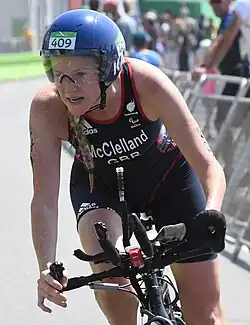 Faye McClelland (born 3 November 1979) is a British paratriathlete who competes in the PT4 category.[1] As of May 2016, she is the 3rd-ranked women's PT4 athlete internationally.[2] She finished fourth at the 2016 Summer Paralympics.[3] Previously she won the ITU world title in her classification in 2010, 2011, 2012 and 2013, placing second in 2014.[4] In 2016 Faye competed in the Paralympics in Rio, placing 4th.