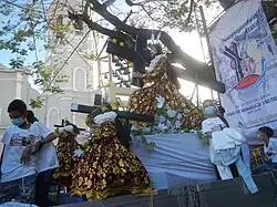 Despite the name, kissing the image is prohibited due to health concerns. Devotees instead used handkerchiefs or small towels to touch the image.[13] In 2021, Pahalík was renamed Pagpupugay ("paying tribute"), when devotees were only allowed to look at the image due to the COVID-19 pandemic.[14] However, the latter is still used alternatively.[15]