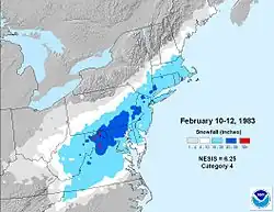 - ^ a b "Record snow: Remembering 1983's Megapolitan Blizzard". WGAL. February 9, 2024. Archived from the original on February 10, 2024. Retrieved February 9, 2024.