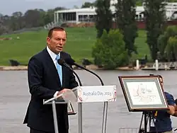 On Australia Day 2015 Abbott announced that Queen Elizabeth had accepted his recommendation that her husband, Prince Philip, Duke of Edinburgh, be appointed a Knight of the Order of Australia. The appointment was criticised by Shorten who said: "It's a time warp where we're giving knighthoods to English royalty. Some people (have) wondered whether it was an Australia Day hoax." Adam Giles, Northern Territory chief minister and Country Liberal Party leader, said: "I woke up this morning and read the wires and was confused between Australia Day and April Fool's Day,"[15] adding "It makes us a bit of a joke. It's Australia Day, we're not a bunch of tossers."[16] Abbott later stated that he had made a captain's call and not consulted with his cabinet colleagues over the appointment.[17][18] Abbott faced criticism from some parliamentarians in his own party and the Nationals over the proposed appointment.[19]