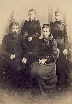 She was born in the Manor of Linkaučiai near Krekenava, then part of the Russian Empire, to the family of Juozas Povickas and Antanina Ona Liutkevičiūtė, petty Lithuanian nobles. The family's manor was confiscated for their participation in the Uprising of 1863 and the family moved to Antakalnis village southeast of Ukmergė.[1] Several of her relatives on her mother's side died in the uprising or were deported to Siberia.[2] As a child she visited her deported grandfather and two uncles in Insar.[1] Bortkevičienė thus grew up surrounded by anti-Tsarist attitudes.[3] She spoke little Lithuanian, which she learned from her mother. Her father spoke Polish, but considered himself Lithuanian (see Polish-Lithuanian identity).[1] By her own admission, she knew nothing of the Lithuanian National Revival before 1889.[4]