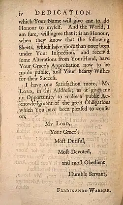 - ^ Warner, Ferdinando (1755). Bolingbroke, or, a Dialogue on the Origin and Authority of Revelation. London: J. Payne. pp. v. ISBN 978-1385624807.