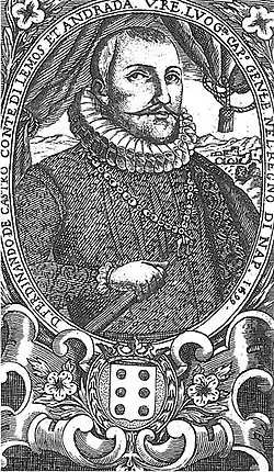 Fernando Ruiz de Castro Andrade y Portugal (14 December 1548 - 20 September 1601) was a Galician (Spanish) nobleman who was Viceroy of Naples from 1599 to 1601. He was the 6th Count of Lemos, an old title from Galicia, centered in the lands around the town of Monforte de Lemos. He was also 3rd Marquis of Sarria and a grandee of Spain.