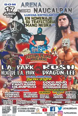 The annual IWRG Festival de las Máscaras ("Festival of the Masks") event is also partly a celebration or homage of lucha libre history with IWRG honoring wrestlers of the past at the events similar to Consejo Mundial de Lucha Libre's (CMLL) Homenaje a Dos Leyendas ("Homage to Two Legends") annual shows. The IWRG's Festival de las Máscaras shows, as well as the majority of their major IWRG shows in general, are held in Arena Naucalpan, owned by the promoters of IWRG and is their main venue. The 2018 Festival de las Máscaras show was the eleventh year in a row IWRG held the show.[5][6][7][8][9][10][11][12]