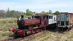 Various locations around Fife were looked at which included the former Crail Aerodrome, Lochore Meadows, Bowhill Colliery, part of the former Auctertool branch line, the former Wemyss Private Railway site at Scott's Road and even the former Kilconquhar railway station, all of which proved unsuitable for various reasons.[1] In 2001 the society acquired the former Kirkland railway marshalling yard on the outskirts of Leven and in 2003, the rolling stock were moved from the Power Station to their new home. Since then the KFRPS have constructed half a mile of track plus substantial sidings, along with a two-track engine shed which is used for restoration work.