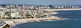 Figueira da Foz (Portuguese pronunciation: [fiˈɣɐjɾɐ ðɐ ˈfɔʃ] ), officially Figueira da Foz City (Portuguese: Cidade da Figueira da Foz), often called simply Figueira for short, is a city and a municipality in the Coimbra District, in Portugal. Practically at the midpoint of the Iberian Peninsula's Atlantic coast, it is located at the mouth of the Mondego River, 40 km (25 mi) west of Coimbra and sheltered by hills (Serra da Boa Viagem), sharing about the same latitude with Philadelphia, Baku and Beijing. The population of the municipality in 2011 was 62,125,[1] in an area of 379.05 km2 (146.35 sq mi).[2] The city of Figueira da Foz proper has a population of 46,600. It is the second largest city in the district of Coimbra.