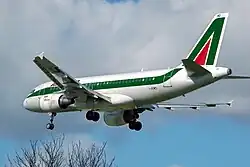 Alitalia Airbus A319-100 landing at London Heathrow Airport, England. (2007)