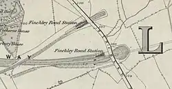 Finchley Road station (bottom) on 1870 Ordnance Survey map