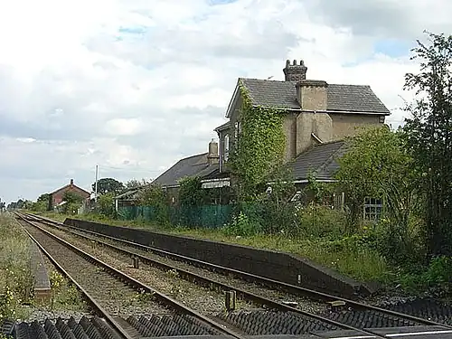 The first railway station to be built was some 500 yards (460 m) to the west of the level crossing on the main Bawtry to Thorne road (A614). The second station, still in South Yorkshire, was on the east of the level crossing, some 2 miles (3 km) west of the county boundary. It was located on the Doncaster to Lincoln Line approximately 1 mile (1.6 km) from RAF Finningley (now Doncaster Sheffield Airport). Although the station closed to passengers on 11 September 1961[3] it was opened specially for trains from Doncaster to the Finningley Air Show until 1965 and on one occasion to serve the Royal Train when H.M. The Queen visited the Royal Air Force airfield.[1]