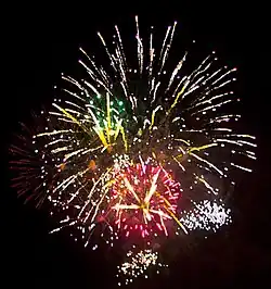 In the UK, the most common injuries are burns from hand-held fireworks such as sparklers.[16] People are also injured by projectiles fired from fireworks, often due to incorrect use. Other issues include the dangers of falling rocket sticks, especially from larger rockets containing metal motors.[17]