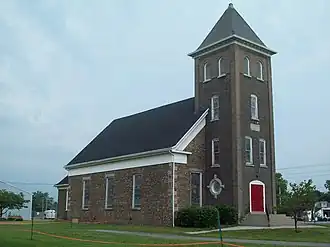 First Baptist Church is a historic Baptist church located at Newfane in Niagara County, New York. It is a Greek Revival style cobblestone church constructed in 1843. It is one of approximately 47 cobblestone buildings in Niagara County.
