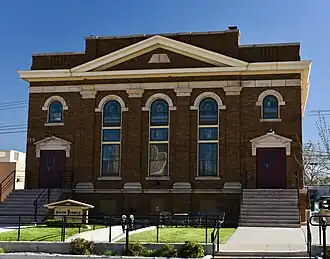 It is a two-story masonry and brick building which is about 55 by 73 feet (17 m × 22 m) in plan.[2]