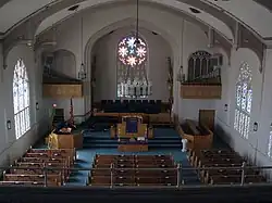 In 1868 the church's first building was standing, still without window panes or pews, and with only a dirt floor. In February, 1869 the congregation voted unanimously to apply for membership to the Presbytery of Newark, New Jersey, along with a request for assistance from the presbytery's Church Erection Board to complete the unfinished sanctuary. The presbytery responded with a loan of $600.[4]