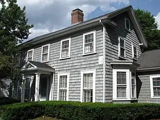 Fisher School–High Street Historic District is a historic district at 748–850; 751-823 High Street in Westwood, Massachusetts. It includes a relatively short stretch of High Street (Massachusetts Route 109) south of Westwood's commercial heart, extending from just south of its junction with Hartford Street to the cemetery at High and Nahatan Streets. It is distinguished by its concentration of Federal and Greek Revival houses from the early 19th century. Prominent in the district is the First Baptist Church, which was built near its present location in 1809 using timbers from an earlier 1731 meeting house, and the 1845 Greek Revival Fisher School, which has been restored by the Westwood Historical Society.[2] The school was named in honor of Daniel Fisher, the colonial Speaker of the Massachusetts House of Deputies, and Ebenezer Fisher, a 19th-century representative to the Great and General Court.[3] The latter Fisher gave $1,000 to benefit the schools of West Dedham.[3] It previously was known as the Clapboardtrees School and District Number Nine.[4][2]