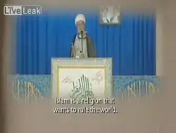 Ayatollah 'Ali Meshkini speaks at a Friday sermon, declaring "Islam is a religion that wants to rule the world. It has done so before and eventually, will rule it again".[42]