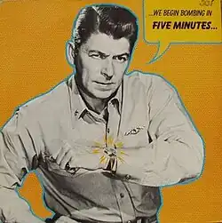 The song begins with the recording made of then-US-President Ronald Reagan's "We begin bombing in five minutes" joke speech, which is then sampled and looped throughout the remainder of the track.[1]