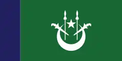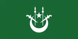 Flag of the Mufti A green flag with a white crescent and star and two white kris and spears charged on the fly.