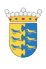Arms: Party per pale nebuly azure and or, six martlets, 2, 2 and 2 counterchanged[1][2]