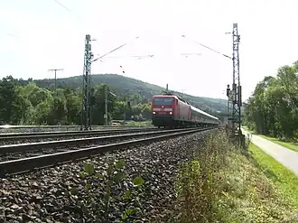 The route mostly follows the Sinn river and runs partly parallel to the Würzburg–Hannover high-speed line. There is a link to the new line south of Burgsinn through the Burgsinn depot. The old 388 metre-long Ramholz tunnel (built 1868-1871) has been replaced by a new 474 metre-long tunnel. The new tunnel was broken through in June 2007.[2][3] Since 17 June 2008 trains running to the south have used the new tunnel.