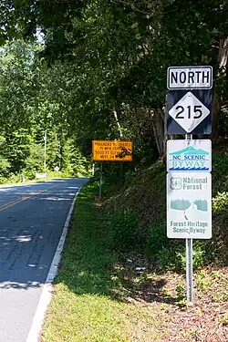 The Forest Heritage Scenic Byway was established in 1989 as a United States Forest Service (USFS); in 1990, it also became a North Carolina Scenic Byway.[4] In 2009, part of US 276 portion of the scenic byway was also designated as a National Scenic Byway, by the United States Department of Transportation (USDOT).