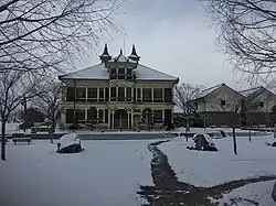 The house was originally constructed in about Meiji 37 (1904) by the Kameoka family, who profited from silk manufacturing in Koori Town. The building was not donated to the former Hobara Town (present day Date) until Showa 61 (1986). It was later deconstructed and relocated to Hobara Total Park (Hobara Sougou Kouen) in Heisei 7 (1995). Although the outside of the structure exhibits a Western style, the inside includes a mix of Japanese architectural features. The house is managed by Date's Hobara Museum of History and Culture.[1]