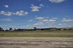 The post was intended for four companies. The men's quarters consist of two buildings, each 350 feet (110 m) long by 17 feet (5.2 m) wide, placed end to end, with an interval of 15 feet (4.6 m), which forms the sallyport. They are built of cottonwood logs, covered with pine siding, are lathed and plastered, the ceilings being 12 feet (3.7 m) high. Transverse partitions divide the buildings into dormitories, mess-rooms, kitchens, &c. The squad-rooms measure 20 by 17 feet (5.2 m), are intended for 16 men each, allowing about 255 cubic feet (7.2 m3) air space per man. The experiment was tried for one company of removing the partitions and throwing the small rooms into one, but it was thought that this weakened the building too much. There were no wash or bath-rooms. Ablution must be performed out of doors. It was in contemplation to build a piazza for each building. The dormitories were fitted with rough wooden double bunks in two tiers. The privies, ordinary earth latrines, are 75 yards distant. The ventilation of the barracks were very defective. There were three sets of laundresses' quarters, in a large one-story house similar to the officers' quarters.[9]