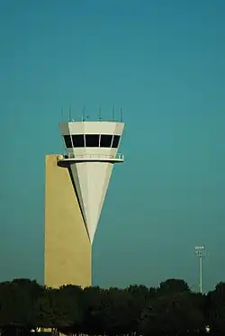 Alliance Airport was an occasional source of friction between the cities of Dallas and Fort Worth prior to the repeal of Wright Amendment, which imposed long-distance flight restrictions at Dallas Love Field after non-compete clauses in the 1968 DFW Concurrent Bond Ordinance signed by Dallas and Fort Worth failed to stop Southwest Airlines from beginning service from Love. The bond agreement prohibited both cities from offering municipal airport services that are "potentially competitive" with DFW.[5][6] Fort Worth officials long asserted that, unlike Love Field, Alliance is not a direct competitor to DFW as no attempt was ever made to initiate passenger service there and the FedEx and American Airlines bases would never have been located at DFW, instead.[7]