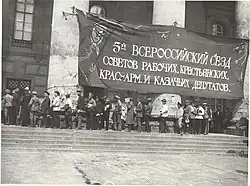 During the party congress proceedings a number of delegates, such as Cherepanov, Magerovsky, Krushinsky, Chizhikov and Grigory Lesnovsky, voiced critiques against the actions of the Central Committee. These delegates argued that the party should abandon armed struggle against the Bolsheviks and seek legalization of the party.[1][12] These propositions were put forth to vote, and were rejected by the majority of party congress delegates.[12] The party congress reaffirmed the line of armed struggle against the Bolsheviks and called for the abolition of the Council of People's Commissars and the transfer of the role of governance to the All-Russian Central Executive Committee.[13]