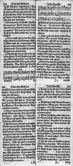 1. ^ a b Kroll, Thomas (1 December 2007). ""Fröhlich soll mein Herzen springen" / Über die Weihnachtslieder Paul Gerhardts" (in German). Deutschlandfunk. Retrieved 9 December 2018.