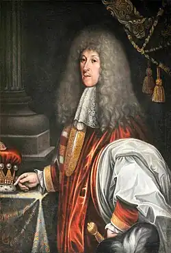 Browne succeeded his father as Viscount Montagu in 1682, and served as assistant cupbearer at the coronation of James II of England in 1685.[1] In February 1688, he was appointed Lord Lieutenant of Sussex to replaced Charles Sackville, 6th Earl of Dorset, who had refused to put the "Three Questions" to the Sussex bench (to see if they would favor repeal of the Test and Penal Acts against Catholics). However, when the Glorious Revolution broke out, Montagu was ousted from the lieutenancy and replaced by Dorset again.