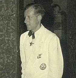 Between 1941 and 1942, he was deputy chief of staff to the Prefect of Hérault.[1] During the Second World War, he took part in the Resistance in Isère.[2] From January 1943, while undercover as a student and scout from Grenoble, he ran a small network, Goélette (part of the Bureau central de renseignements et d'action), which extended as far as Valence.[2][3] Under the orders of General de Gaulle, he was tasked with expanding the network. His mission also involved finding “depot ”[notes 3] addresses, where all the information obtained (photographs, plans, and stolen documents) could be stored before being sent to General de Gaulle's intelligence service in London.[3] After recruiting members of the Jackson family (Phillip, Toquette, and Sumner), he set up a Resistance base in Paris at 11, avenue Fochd.[3][4][notes 4] After the liberation of Grenoble in August 1944, he became “liaison officer interpreter for the leading battalion commander of the liberating troops”.[2]