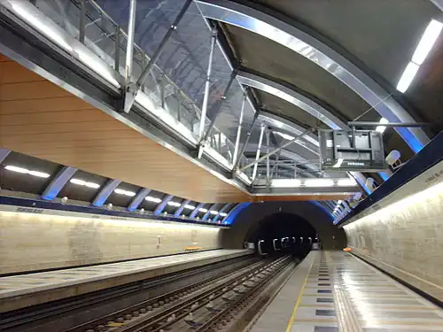 Francisco Bilbao is an underground metro station on the Line 4 of the Santiago Metro, in Santiago, Chile. It is located under the intersection of Tobalaba Avenue and Francisco Bilbao Avenue. The latter avenue, which is named after Francisco Bilbao, gives its name to the station. The station was opened on 30 November 2005 as part of the inaugural section of the line between Tobalaba and Grecia.[2]