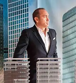 Since childhood, he has always been interested in both art and technology, but during his early years he thought of becoming a rock and roll musician.[4][5] To this date, he continues to compose and record on his own. He also collects both vintage guitars and amplifiers.[4][5] As a teenager, he decided to enroll in school to be an architect, which he did when he was 17.[4][5] He attended the Monterrey Institute of Technology and Higher Education from 1987 to 1991 and got his bachelor in the field of Architecture.[1][6] After working on his own for a while, he went back to school because he wanted to learn more about cutting edge designs in order to work on bigger projects. From 1998 to 1999 he attended Harvard's School of Design and obtained his master's degree.[4][6][7]