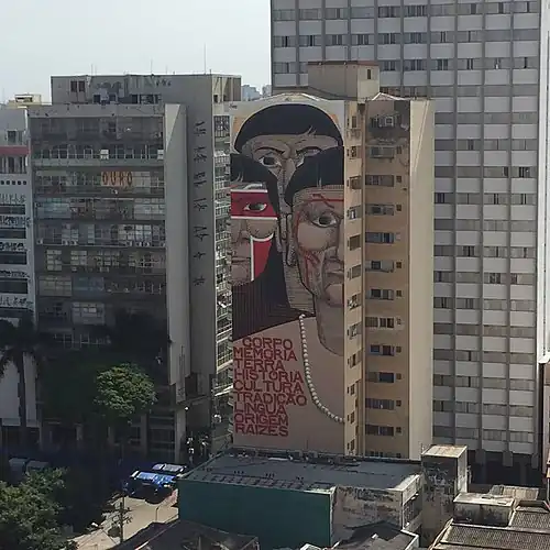 Nunca has exhibited in Brazil at the Museum of Modern Art in São Paulo and in Greece at the AfroBrasil Museum[4][5][6] and in the UK at Tate Modern, the first major display of street art at a public museum in London. The brickwork of the Tate Modern's external walls was decorated with paintings 15 metres high by the artists featured in the exhibition, the Pandolfo twins and Nunca, Blu from Bologna, the Parisian artist JR, the New York collaborative group Faile and Sixeart from Barcelona.[4]