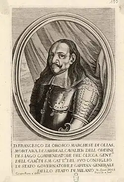 Francisco de Orozco y Ribera (Alessandria, Duchy of Milan, c. 1603–1605 – Milan, 26 December 1668), 2nd Marquis of Mortara and 1st Marquis of Olías and Zarreal, was a military and politician of Italian origin, who served the Spanish monarchy.
