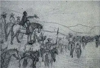 The republican government then ordered Santander to prevent Serviez from doing this however, he too disobeyed this order and agreed with Serviez's plan.[25] During their retreat they were pursued by Spanish Colonel Miguel de la Torre who was able to catch up to them at times, such as at the Negro River crossing where the Spanish attacked the patriots during the ir crossing at the Negro River. The battle was a disaster with most of the army still unable to cross Serviez was forced to cut the bridge which allowed the few on the other side to escape. Serviez's dramatic retreat to the plains of Casanare finally concluded when they reached Chire in July 1816 where they were met with General Rafael Urdaneta's Venezuelan cavalry. The retreat had saved many of the best of the neogranadine officer corps such as Santander and Jose Maria Cordova, and other offices who would form an important part of the army that would fight in the Liberation Campaign of 1819.[25] The other part of the republican army, who had fled south, would be defeated at the Battle of Cuchilla del Tambo with many of their officers perishing in battle or executed along with almost the entirety of the officials that made up the government of the First Republic.