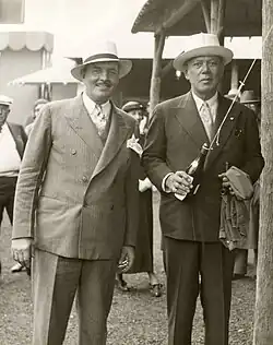 Buck was headed to India at the time, and struck an agreement with the Zoological Society's board for him to collect some animals for the zoo and then come to San Diego to become its director.[26][31] It was strongly hoped that his acquisitions would include elephants, an animal the Society, and particularly Wegeforth, had been attempting to add to the zoo's collection for some time.[32] Buck found two female Asian elephants in Calcutta named "Empress" and "Queenie" that were trained to work, and bought them for the zoo.[32] When the elephants arrived in San Diego after a long journey by boat and freight train, Wegeforth and superintendent Harry Edwards rode them through the city streets to the zoo.[32][33]