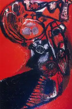 Exhibiting internationally as early as 1951, Lobdell’s work was included in exhibitions at the Petit Palais, Paris, the Third Biennial of São Paulo, the Osaka International Festival, Japan, as well as venues in London, Turin, and Eindhoven, including early solo exhibitions in Paris and Geneva. He showed regularly in solo and group exhibitions in New York, Los Angeles, and San Francisco throughout the 1950s and 1960s, including at the Walker Art Center (1960); The Whitney Museum of American Art (1962); and the Solomon R. Guggenheim Museum, New York (1964). Solo museum exhibitions include San Francisco’s M. H. de Young Memorial Museum (1960, 1992); a major retrospective exhibition, “Paintings and Graphics from 1948 to 1965,” at the Pasadena Art Museum and Stanford University Art Museum (1966); “Frank Lobdell: Works, 1947-1992,” Stanford University Art Museum (1993); California Palace of the Legion of Honor, Fine Arts Museums of San Francisco, "Frank Lobdell: The Art of Making and Meaning" (2003); Portland Art Museum, Oregon, "Frank Lobdell: Making and Meaning" (2004), and others.[3]