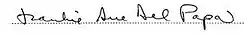 Del Papa earned a bachelors of arts degree from the University of Nevada, Reno, in 1971 and graduated from George Washington University Law School with a J.D. in 1974.[1][2][3] She was the third woman elected as student body president at the University of Nevada, Reno. She was an associate at the law office of Lesley B. Gray in Reno, Nevada, between 1975 and 1978, a partner at the law offices of Thornton and Del Papa between 1979 and 1984, and worked in private practice in Reno between 1984 and 1987.[3]