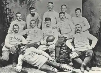 The Franklin & Marshall Diplomats football program was first organized in 1887 by Seminary student Miles O. Noll. Franklin and Marshall was defeated 9–0 by the York YMCA. Later that year, the program played a re-match and lost again, this time by a score of 6–4.[5] Frank Mount Pleasant became the head football coach in 1910.