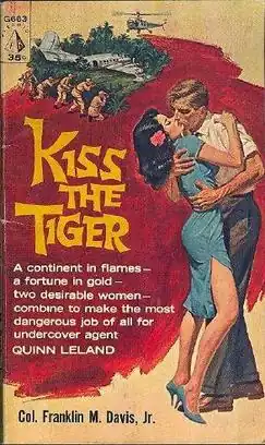 Cover of 1961 Pyramid Books paperback edition of Kiss the Tiger by Col. Franklin M. Davis Jr.