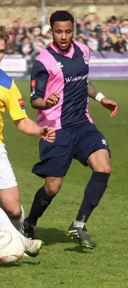 He was immediately signed by Isthmian League Premier Division rivals Dulwich Hamlet, making his debut for the club against Wingate & Finchley on 23 September 2014.[5] He went on to play 38 times in all competitions,[6] and he was rewarded with a call up to the England C team for their match against Republic of Ireland U21 on 1 June 2015, playing the full 90 minutes as England C won 2–1.[7]