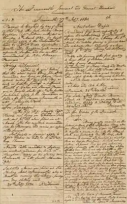 The Fremantle Journal and General Advertiser was the first newspaper published in Western Australia.[1][2][3][4] It was edited and published by James A. Gardner, with the first issues appearing less than a year after the establishment of the Swan River Colony in 1829.[5][6] As there was not yet a printing press in the colony, each issue was handwritten.